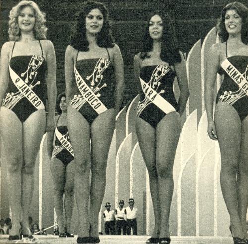 O ano era 1980, a cidade Brasília... o último Miss Brasil dirigido pela Rede Tupi/Diários Associados. No ano seguinte, Silvio Santos e o SBT assumiriam o concurso até 1989. Na foto, 4 das 10 semifinalistas do Miss Brasil 1980, a vencedora, que representou o Rio de Janeiro, Miss Pernambuco, Miss Pará e Miss Minas Gerais. Foto da Revista Fatos & Fotos da época.